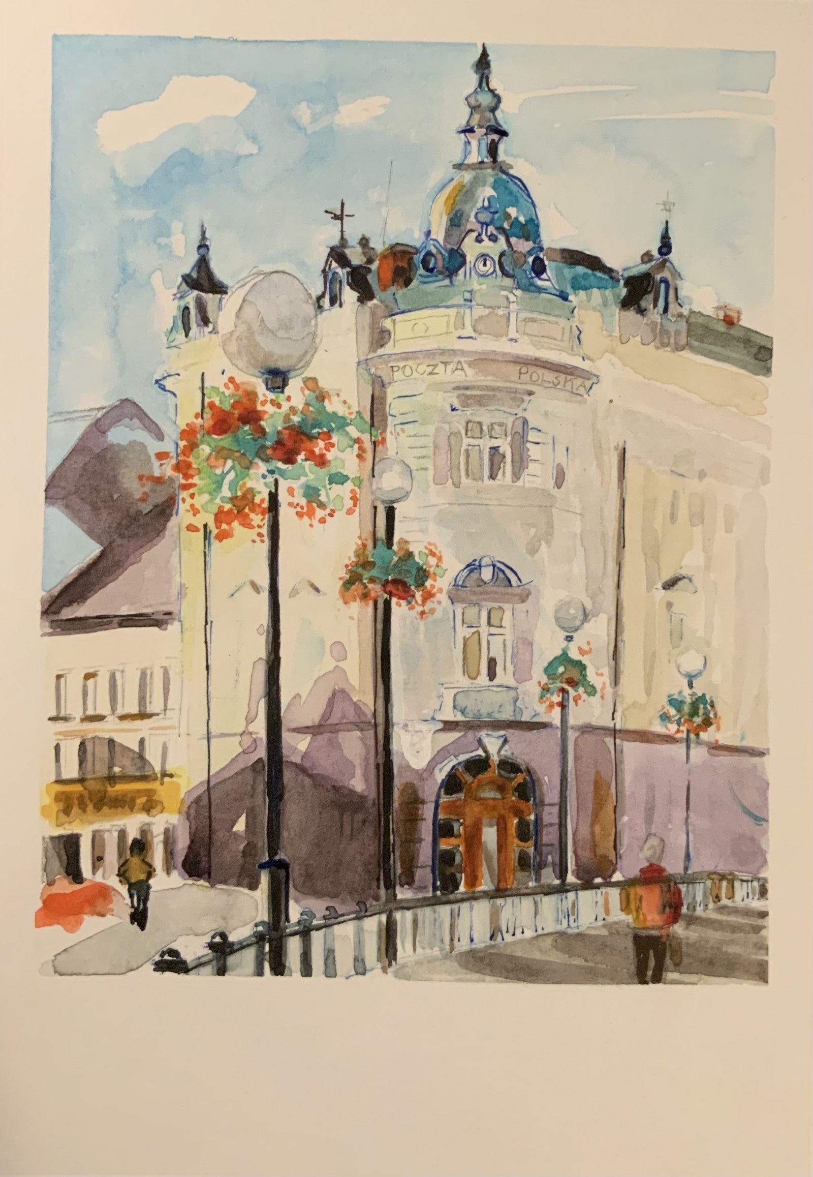 BIELSKO POCZTA, AKWARELA, 40X30, 2021