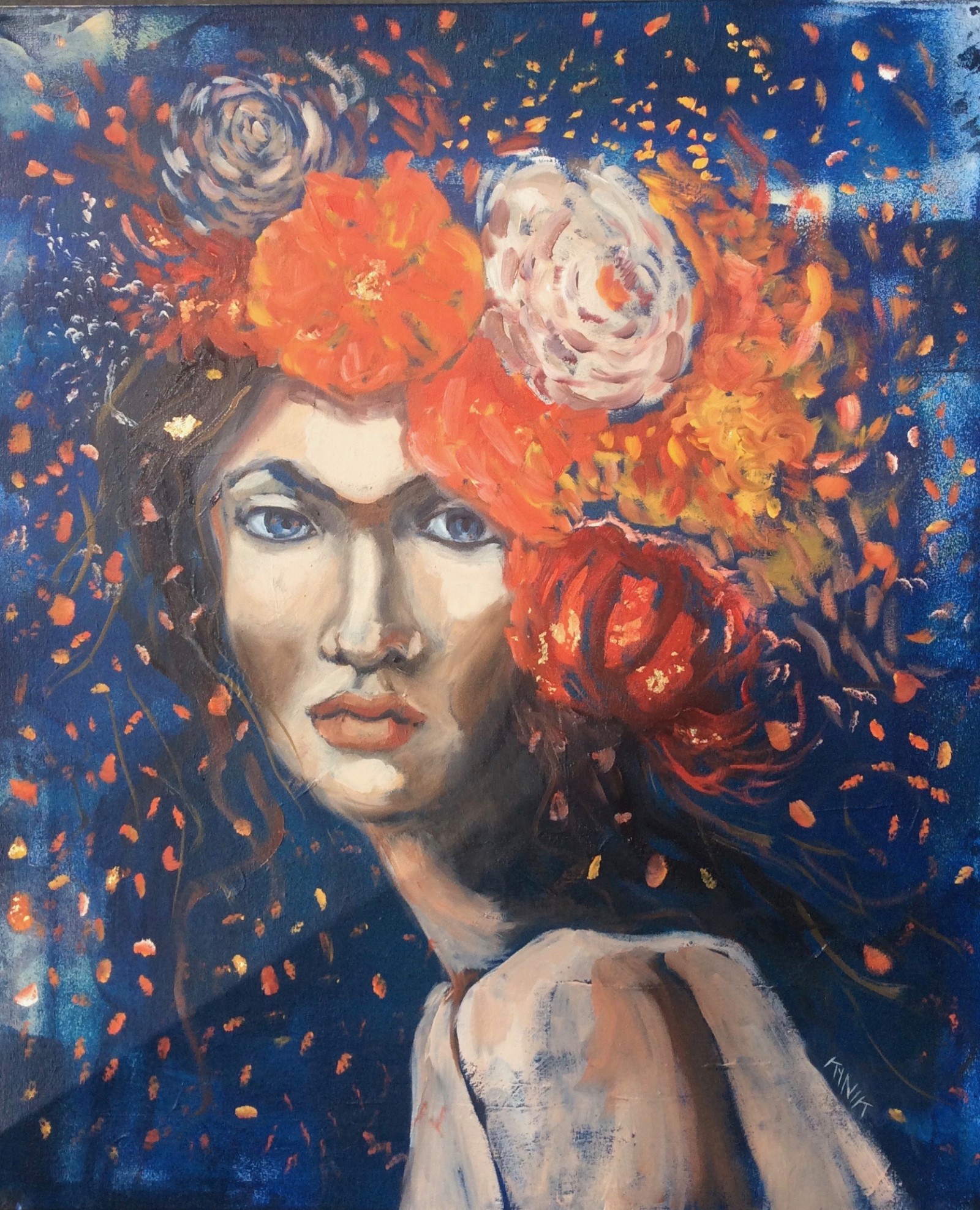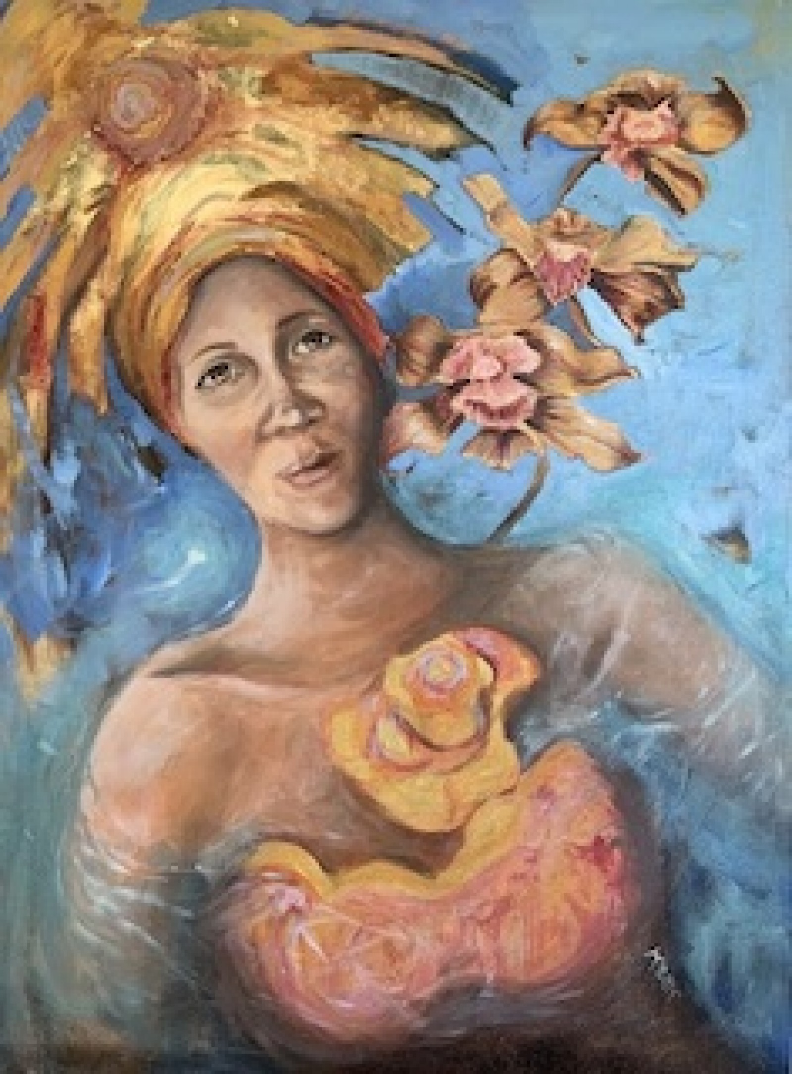 Piękna Paryżanka. Akryl, olej, folia. 2019